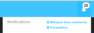 Par défaut, à chaque "événement" (ajout calendrier, réservation, paiement...) sur le site lacbleu.vpdive.com vous recevez une notification qui s'incrémente sur la petite cloche (ici par ex:20)
